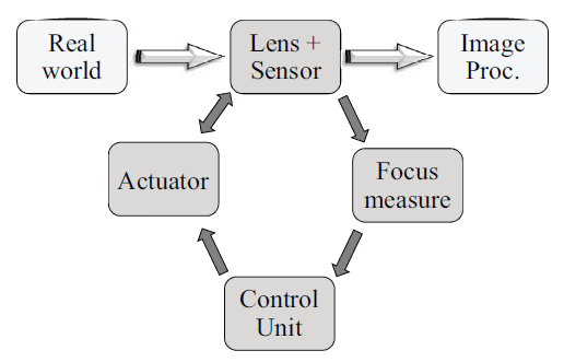 评价函数输出数据到AF控制单元,控制电机进行调整,如此往复,最终输出聚焦正确的图像。