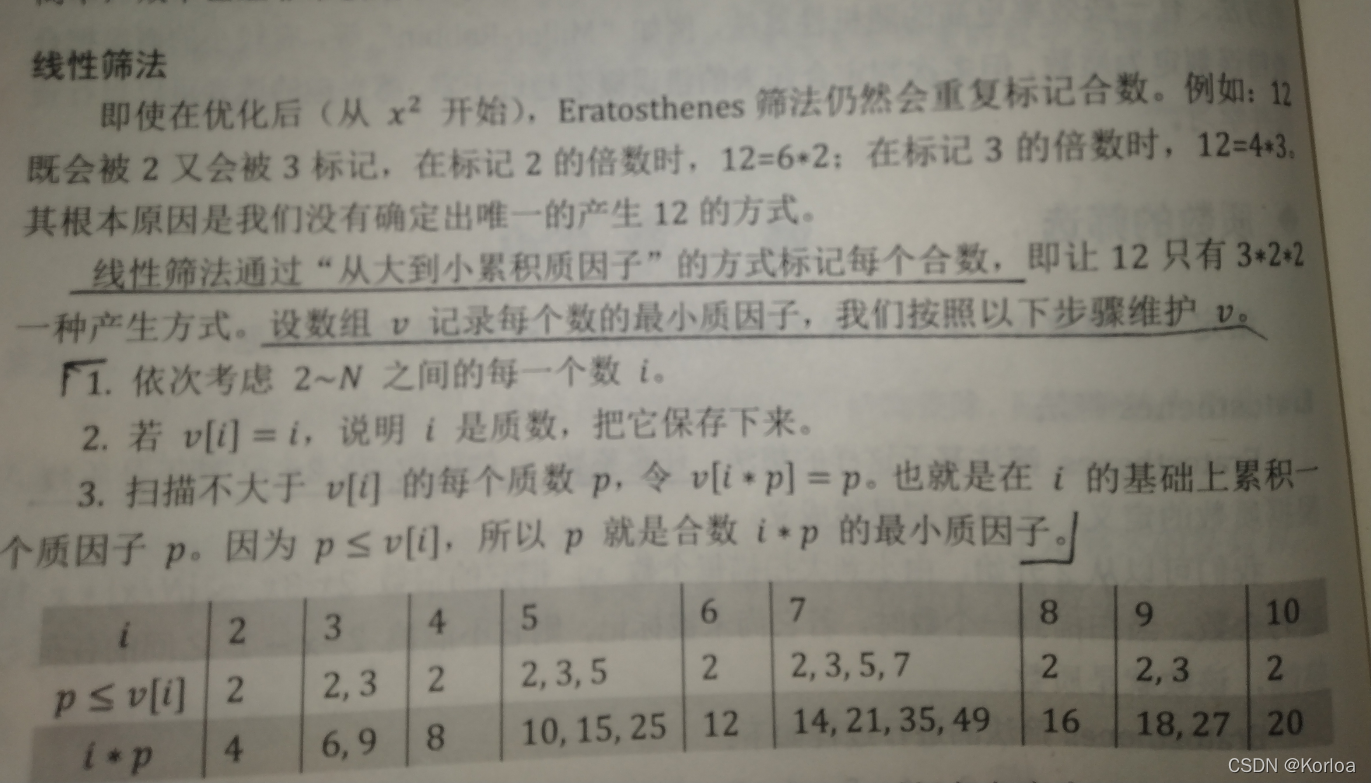 如12被标记了两次,3*4与2*6。所以说,避免冗余运算是提高算法运算效率的关键,那么有没有这样一种完美的算法呢?有,那就是线性筛法!