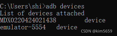 所以要先查找设备:adb devices 会显示这样:
