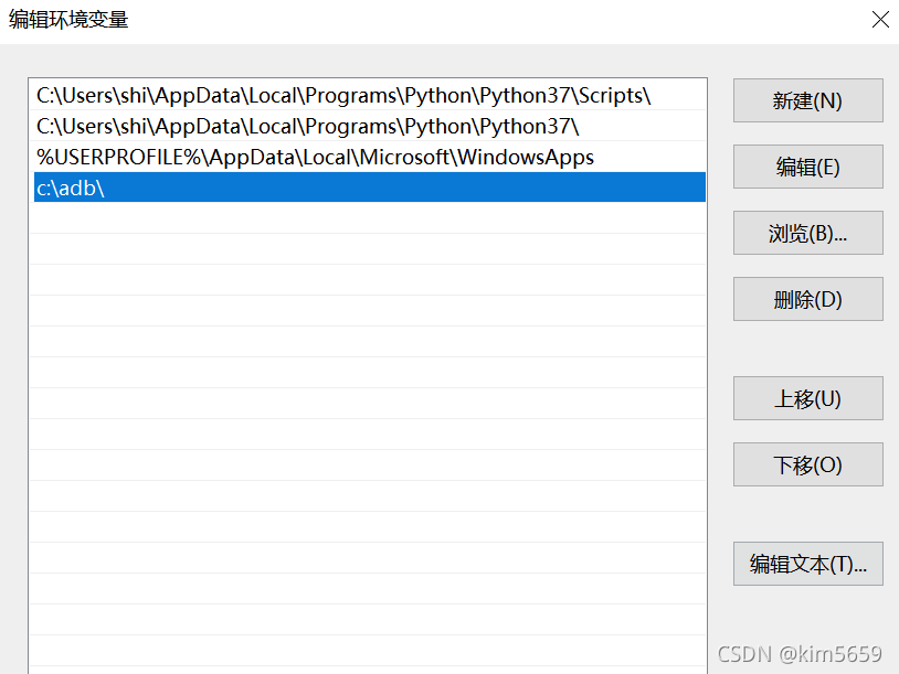 双击path,加入adb所在路径: