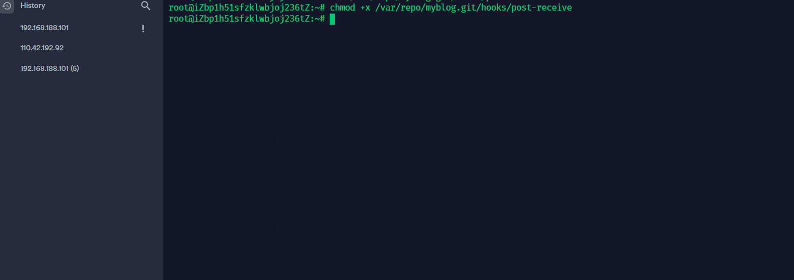 chmod +x /var/repo/myblog.git/hooks/post-receive