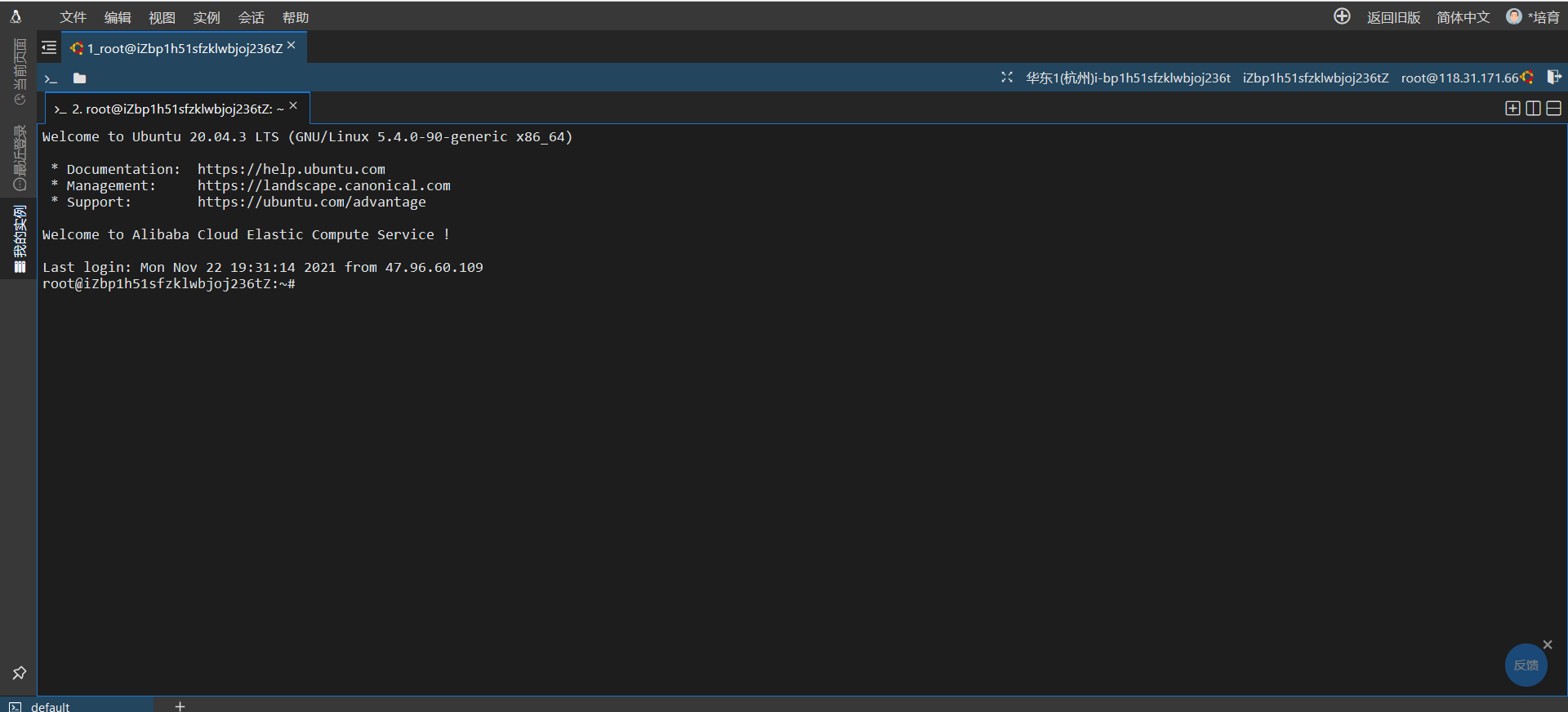 - 此时便可以通过词公网ip远程登录SSH该服务器咯