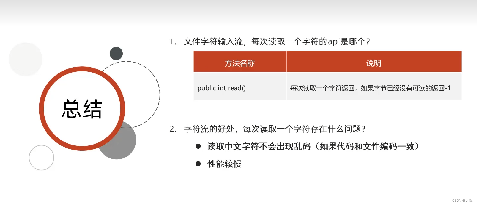 字节流适合做一切文件数据的拷贝(音视频,文本)字节流不适合读取中文内容输出