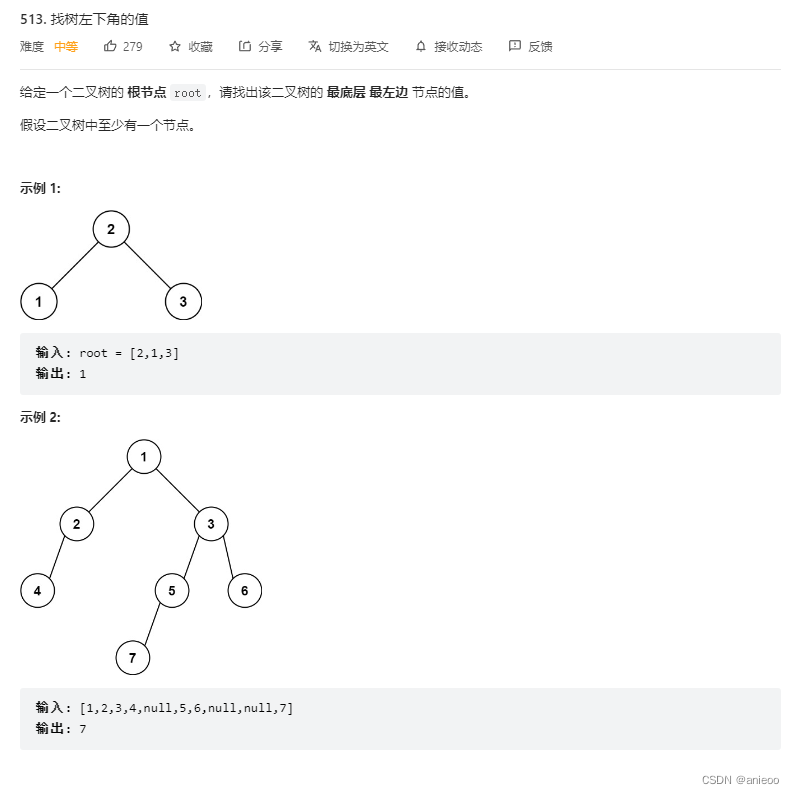 每次优先递归左子树,用一个变量maxdepth保存递归地最大深度,一个变量ret保存左下角的值,当前遍历的深度curdepth大于maxdepth的时候,更新maxdepth和ret,即可。