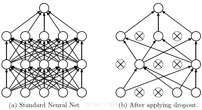 先回到标准的模型即没有dropout,我们用相同的训练数据去训练5个不同的神经网络,一般会得到5个不同的结果,此时我们可以采用 “5个结果取均值”或者“多数取胜的投票策略”去决定最终结果。