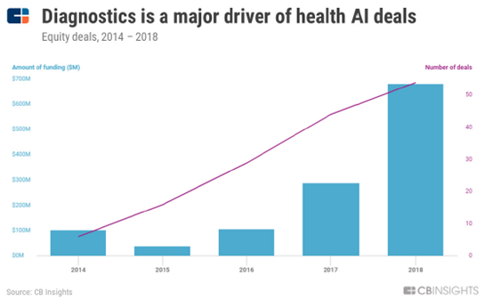 自2014年以来,快速的监管审批为80多家自筹集了股权融资的AI影像和诊断公司开辟了新的商业途径,共计149笔交易。
