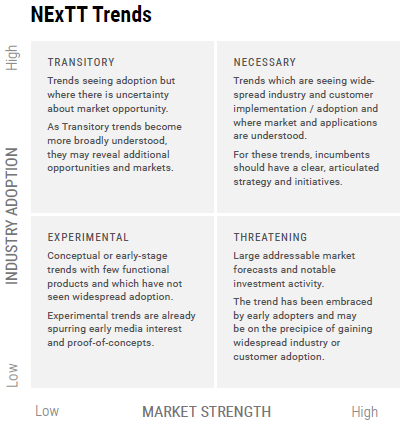 NExTT使用数据驱动的信号,从概念到成熟再到广泛采用,来评估技术,产品和商业模型的趋势。