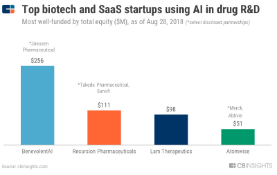 当递归制药(Recursionpharmaticals)等生物技术人工智能公司同时投资人工智能和药物研发时,传统制药公司正与人工智能SaaS初创公司合作。
