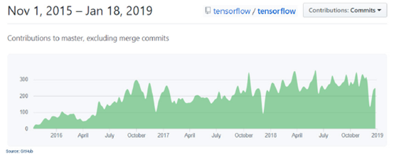 每月在GitHub上有数百名用户向TensorFlow做出贡献 (用户可以在其中进行协作的软件开发平台)。