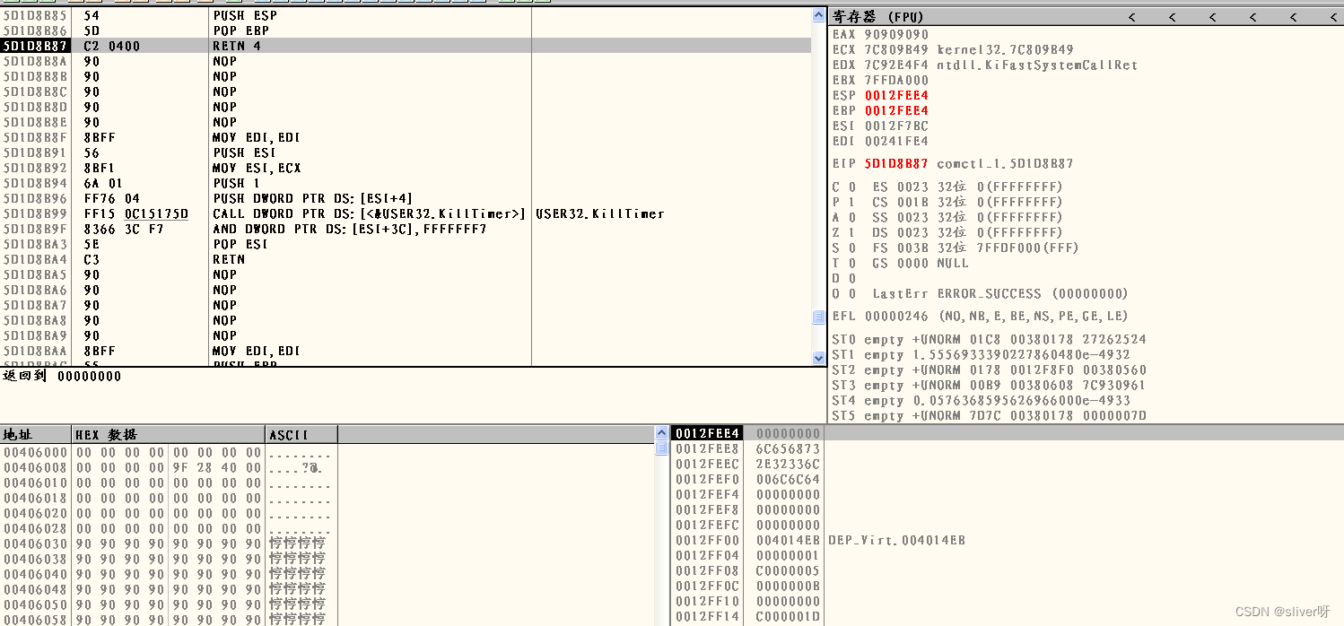 windows xp sp2、原版OD、DEP状态:Optout、VC++6.0(release)