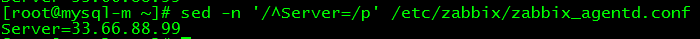 [root@mysql-m ~]# sed -i 's/^Server=[0-9]*\.[0-9]*\.[0-9]*\.[0-9]*/Server=33.66.88.99/g' zabbix_agentd.conf