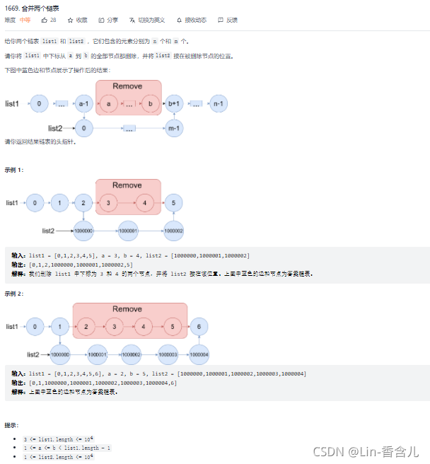 ListNode* mergeInBetween(ListNode* list1, int a, int b, ListNode* list2) {