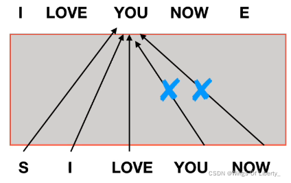 如果像encoder的注意力机制那里一样没有mask,那么在训练decoder时,如果要生成预测结果you,就需要用到下面整个句子的所有词。但是在真正预测的时候,并看不到未来的信息(即you和now)。