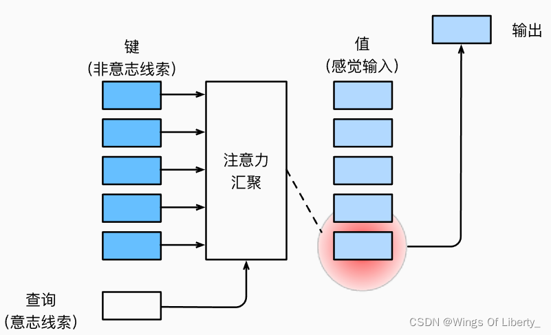 注意力汇聚:一个网络层,该层的输出结果是一个所有元素的和等于1的权重向量。该层的作用是把想要的物品(目的物品)所对应的权重值变高。这样使用该‘权重向量’乘‘值’后,即使目的物品“下意识的吸引力(即‘值’)”不够高,但是由于它对应的权重高,其他物品对应的权重小,最终选择到目标物品的可能性也会变大。