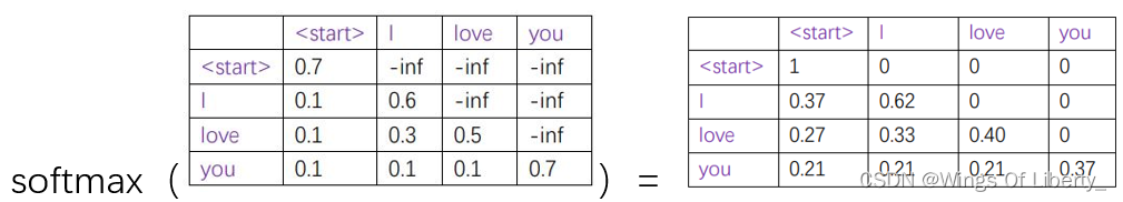 之后再对结果做softmax,就能将-inf变为0,得到的这个矩阵即为每个字之间的权重。