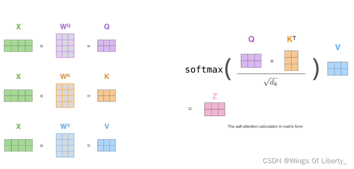 ),得到Q、K、V。然后做self-attention操作。首先通过公式