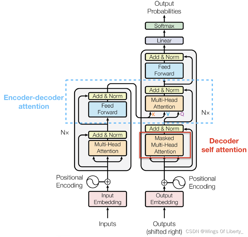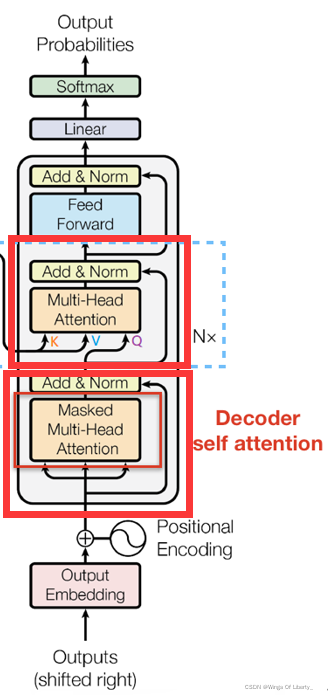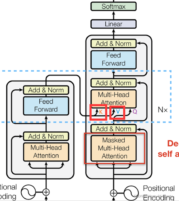 如果解码部分的多头注意力有多层,那么输入到每层多头注意力里的K、V都来自于encoder。除了第一层的Q来自于masked Multi-Head Attention的输出,其余的Q都来自于上层encoder的输出。