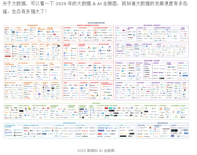 关于大数据,可以看一下 2020 年的大数据 & AI 全貌图,就知道大数据的发展速度有多迅猛、生态有多强大了!