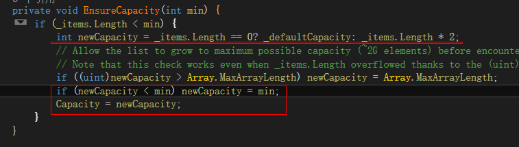 总体描述:List或者ArrayList 在初始时给出4的默认长度,超出后以2倍的方式扩容;超过0X7FEFFFFF后 会以最大值为长度 但是看.Net源码 如果此时max还小于需求长度 会把长度设为 需求长度;