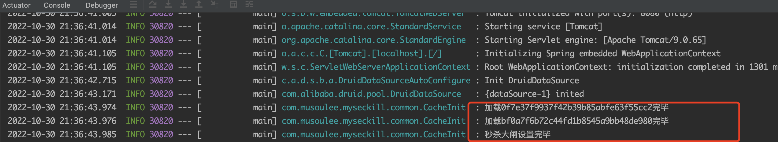 所以第一步,我们需要在SpringBoot启动时初始化一些数据,这包括商品详情的缓存以及秒杀大闸的相关设置。