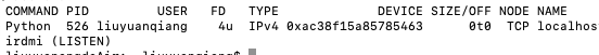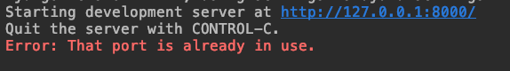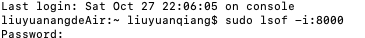 1.打开终端,输入sudo lsof -i:被占用的端口号(我这里是8000端口被占用)