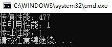 cout << "传引用性能:" << end2 - begin2 << endl;