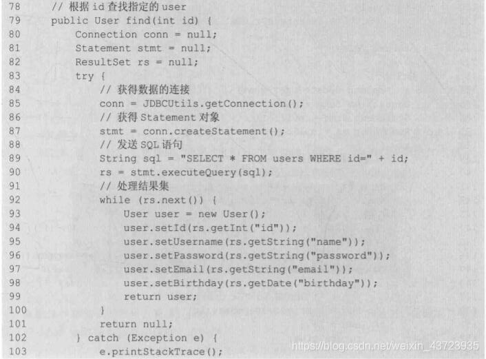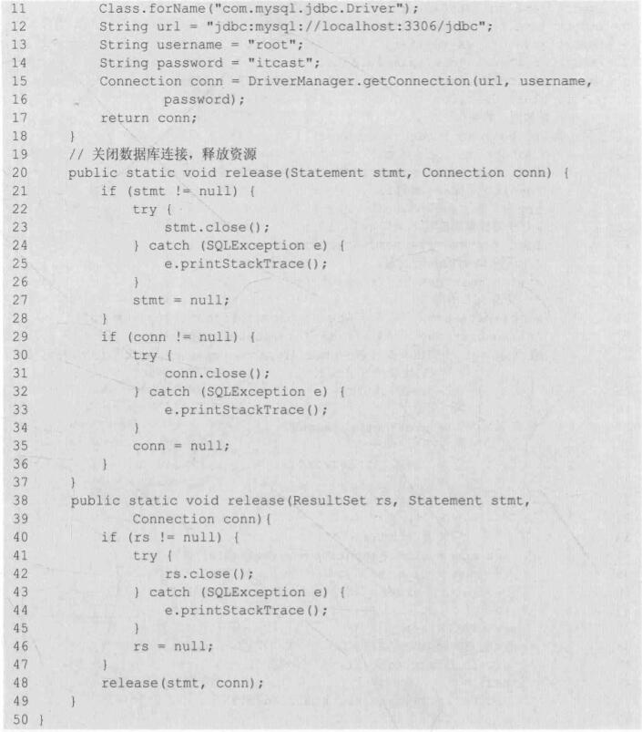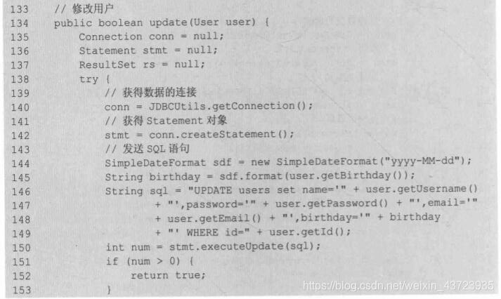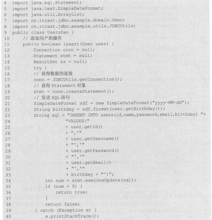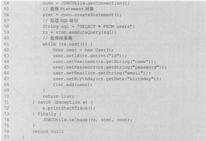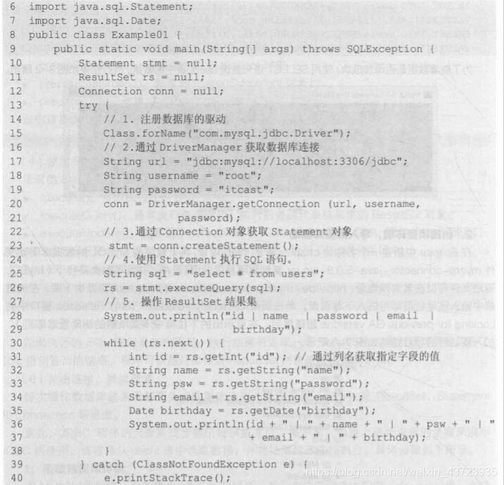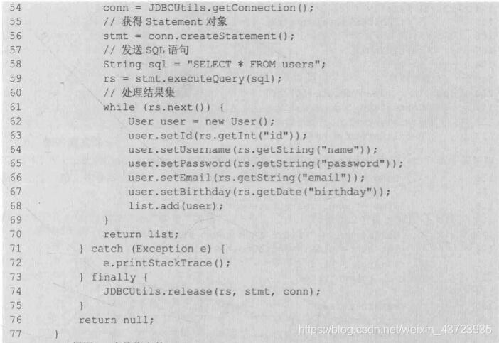 Statement stmt = conn.createStatement();(4)使用的Statement执行SQL语句