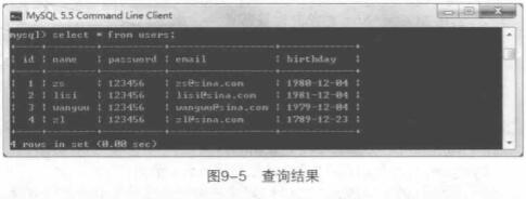 VALUES('wangwu','123456','wangwu@sina.com','1979-12-04');
