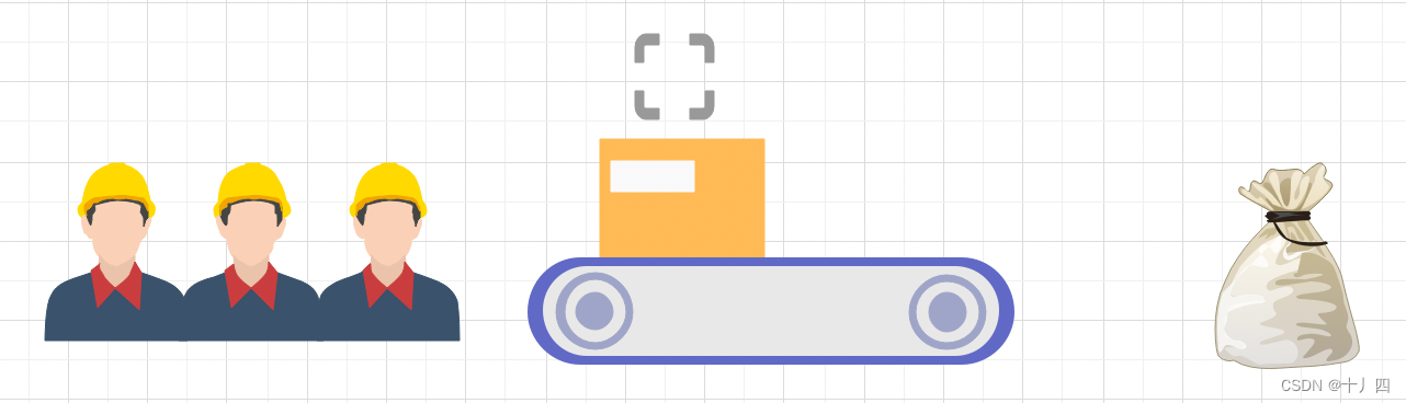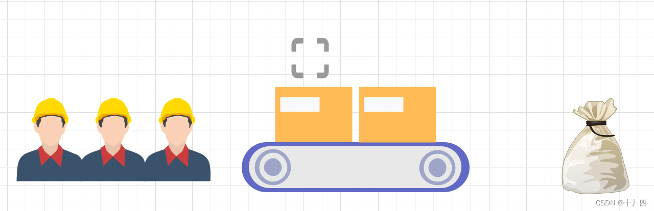 2、上游有多个工人放东西(多线程),大家轮流排队使用传送带,等上一个人用完之后,下一个人才能接着用(synchronized锁),保证里面的东西也不会混在一起。我们在传送下在增加一个分拣人员(工厂方法),根据传送带上的包裹数字(entity),分到不同袋子里面。