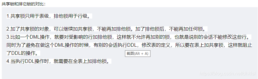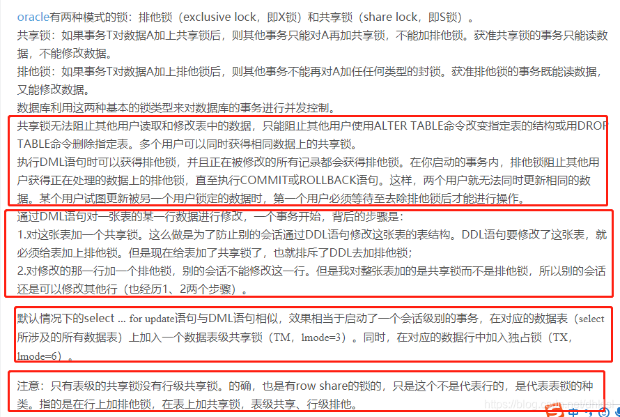 关于共享锁排它锁、表级锁行级锁的解释清参考下面: