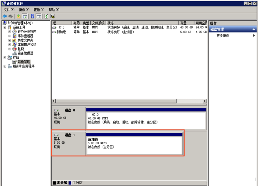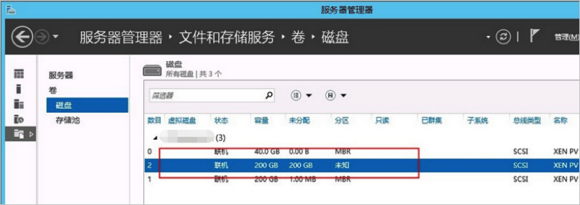 在Windows系统中,您在磁盘管理器中能看到数据盘的信息,但数据盘未分配盘符,如下图所示。