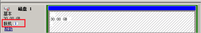 在Windows系统中,您在磁盘管理器中看到磁盘显示为脱机,而且不显示分区情况,如下图所示。