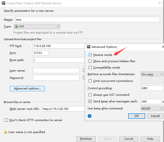 在PHPStorm2017中需要连接服务器,实现开发中可以实时上传项目代码,并及时运行项目。但在PHPStorm2017通过连接内置FTP时,在ip, 端口号,用户名,密码都正确的情况下,而且也用FTP客户端连接服务器成功,而PHPStorm2017连接FTP却提示连接失败,其实很简单,只需选择“高级设置 ”里面的被动模式即可。
