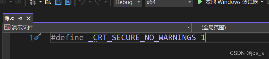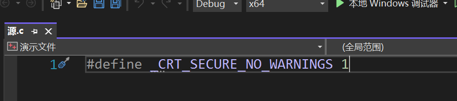 2.在源文件的最上边一行加入#define _CRT_SECURE_NO_WARNINGS 1后就可以使用scanf啦