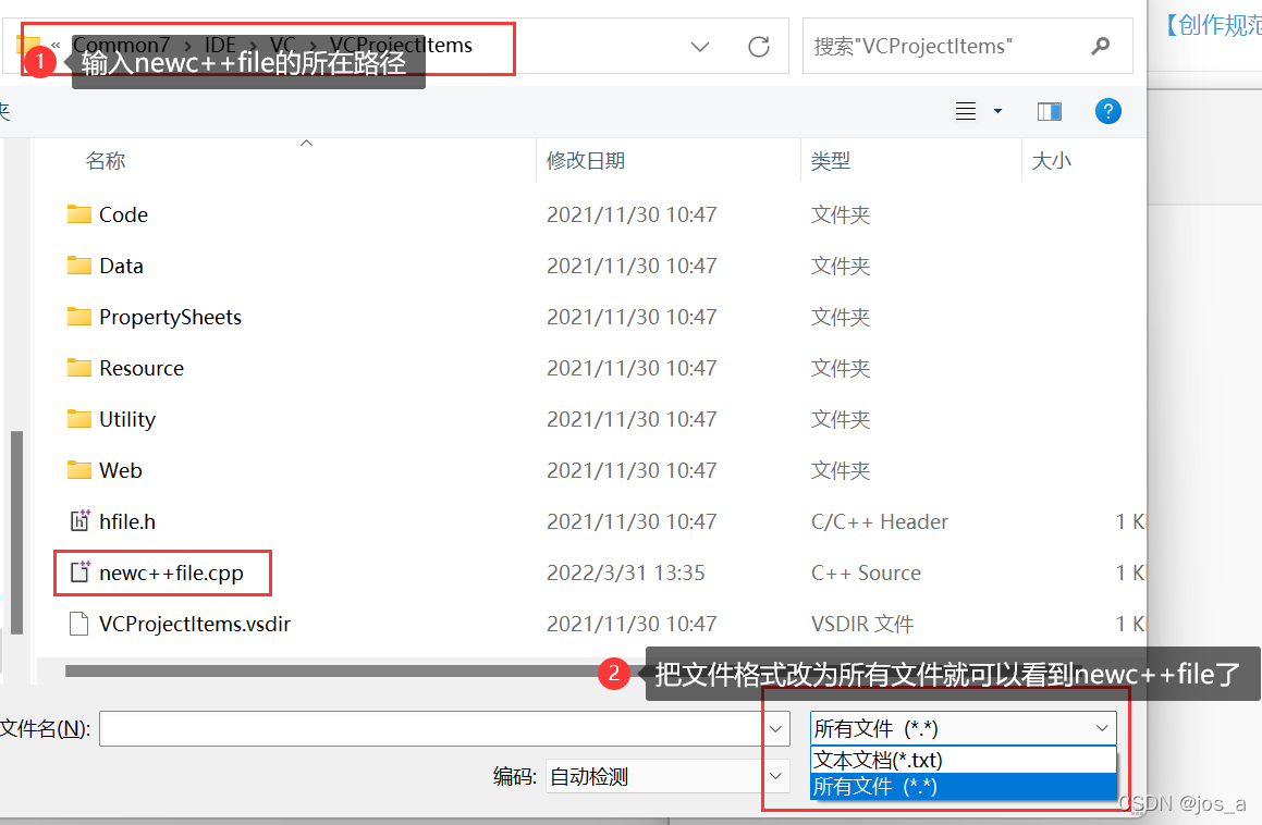 D:\Program Files\Microsoft Visual Studio\2022\Community\Common7\IDE\VC\VCProjectItems里的(因为不同版本路径可能不同,所以最方便的就是去安装路径之后搜索newc++file.cpp这个文件)