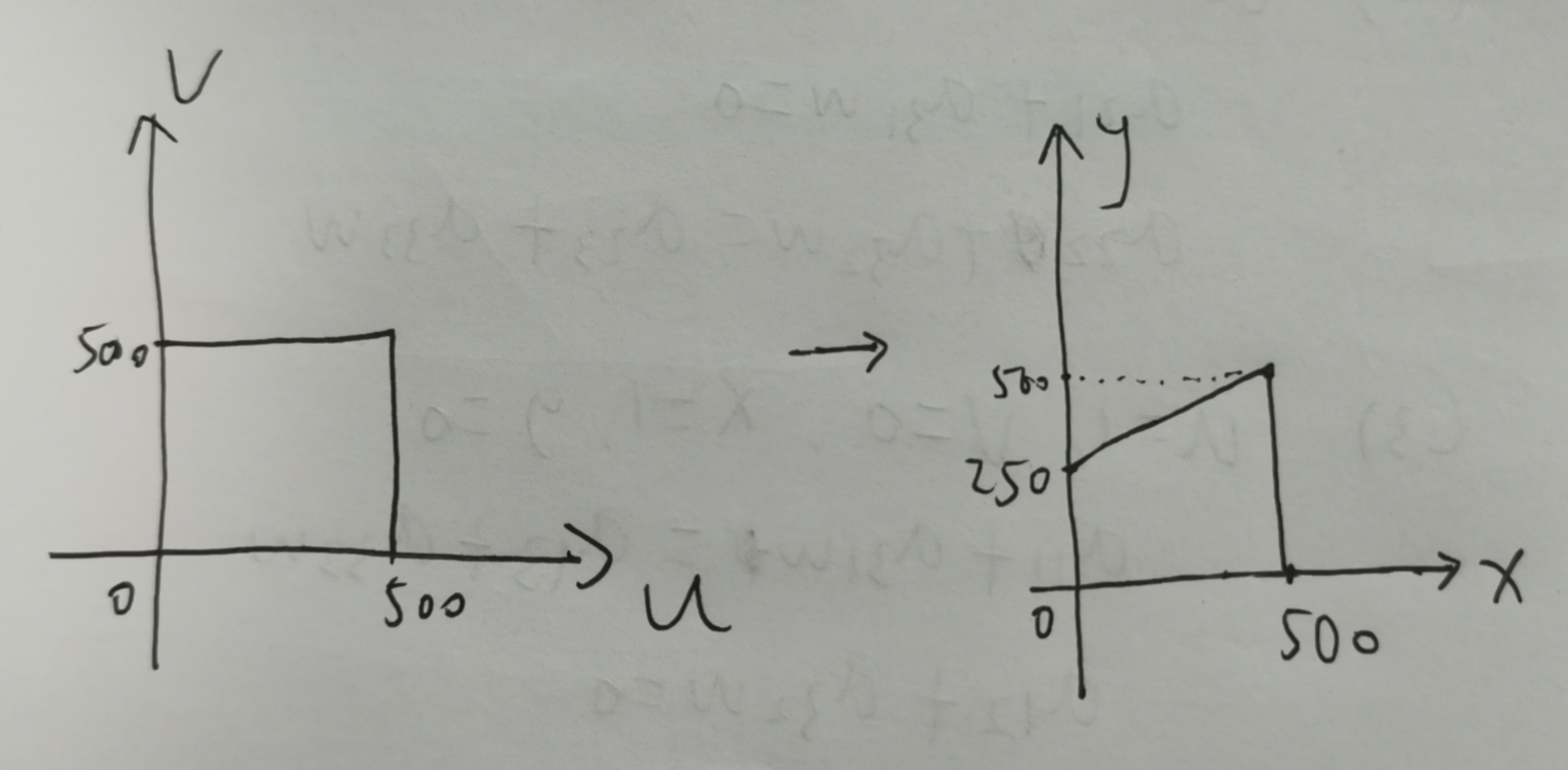 如果是透视,那么变换就是x=500u/(1000-u), y=500v/(1000-u)
