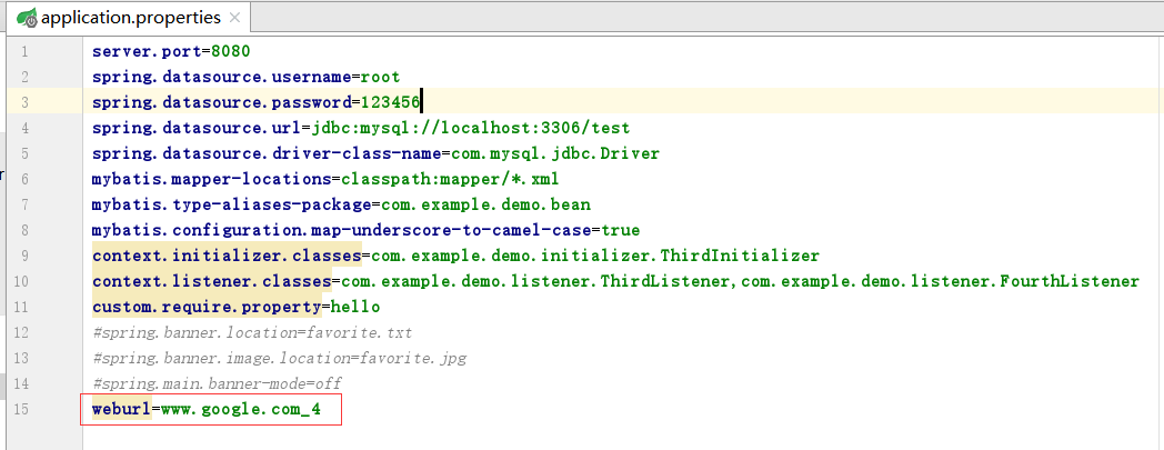 }2)然后通过一个启动类加载器打印属性weburl
