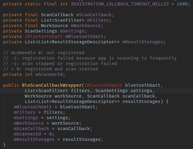 BleScanCallbackWrapper wrapper = new BleScanCallbackWrapper(gatt, filters,