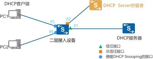 DHCP Snooping信任功能将接口分为信任接口和非信任接口: