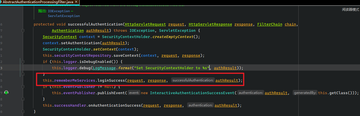 // 这里需要给 认证器 执行 rememberMeService