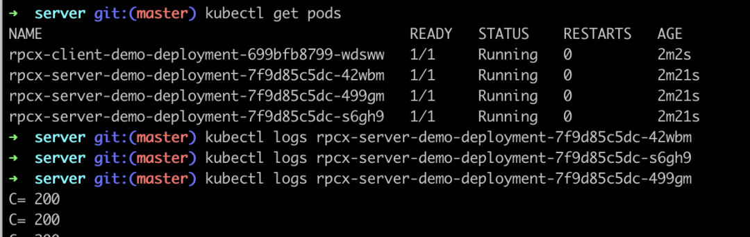 因为rpcx框架是创建一个长连接,和服务端的长连接进行通讯,在长连接上不断把服务调用的请求发过去,然后在服务端的连接上收到这个请求。因此若创建了一个连接,这个连接在不中断或没有异常情况下,永远只和其中一个Pod进行通讯。所有的请求都是发在同一个Pod上,其他两个Pod处于空闲状态,在这种情况下服务端没有负载均衡的能力,这是它的一个缺点。