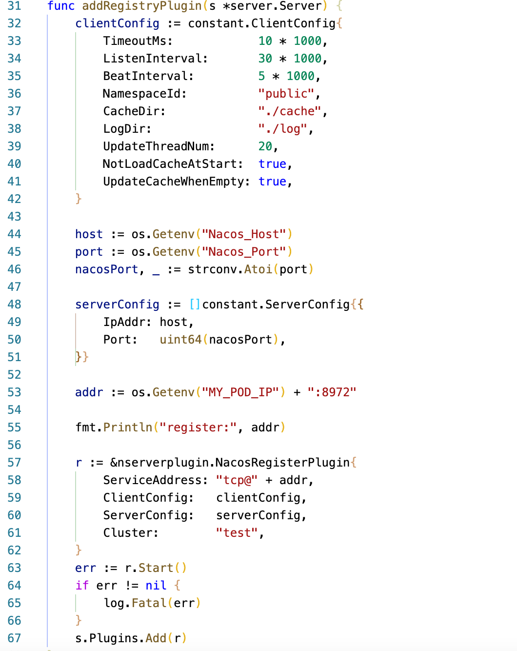下图中程序得到了nacos的主机、IP地址和端口,就可以生成nacos的配置信息。在K8s情况下,通过环境变量传进来之后插件就可以自动把Pod信息注册到nacos上。