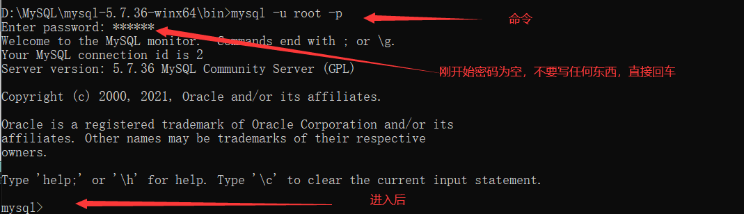 注意 :密码刚开始为空 啥也不用写,直接回车。
