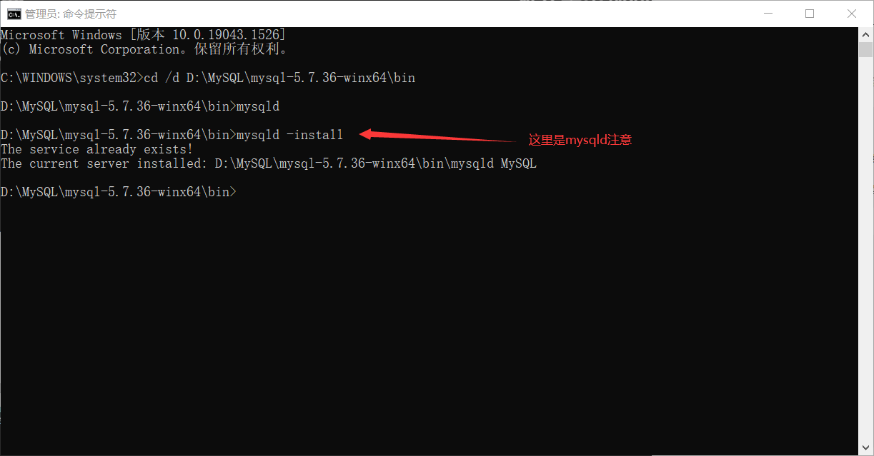 3. 安装 mysql 服务(注:安装完成后也可以在 系统->服务中 看到)(这里我已经安装过所以显示已安装,没安装过的兄弟们会显示成功)