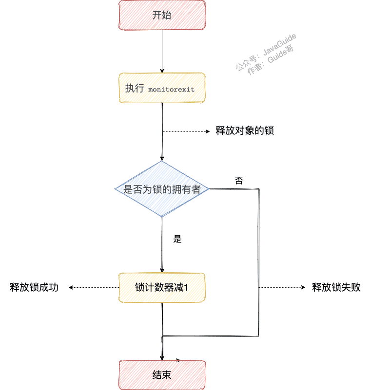 对象锁的的拥有者线程才可以执行 monitorexit 指令来释放锁。在执行 monitorexit 指令后,将锁计数器设为 0,表明锁被释放,其他线程可以尝试获取锁。