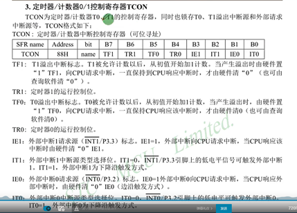 比如图中TOCN寄存器控制了IT0、IT1、IE0、 TF0 、IE1 、TF1这些都是需要通过TCON配置的