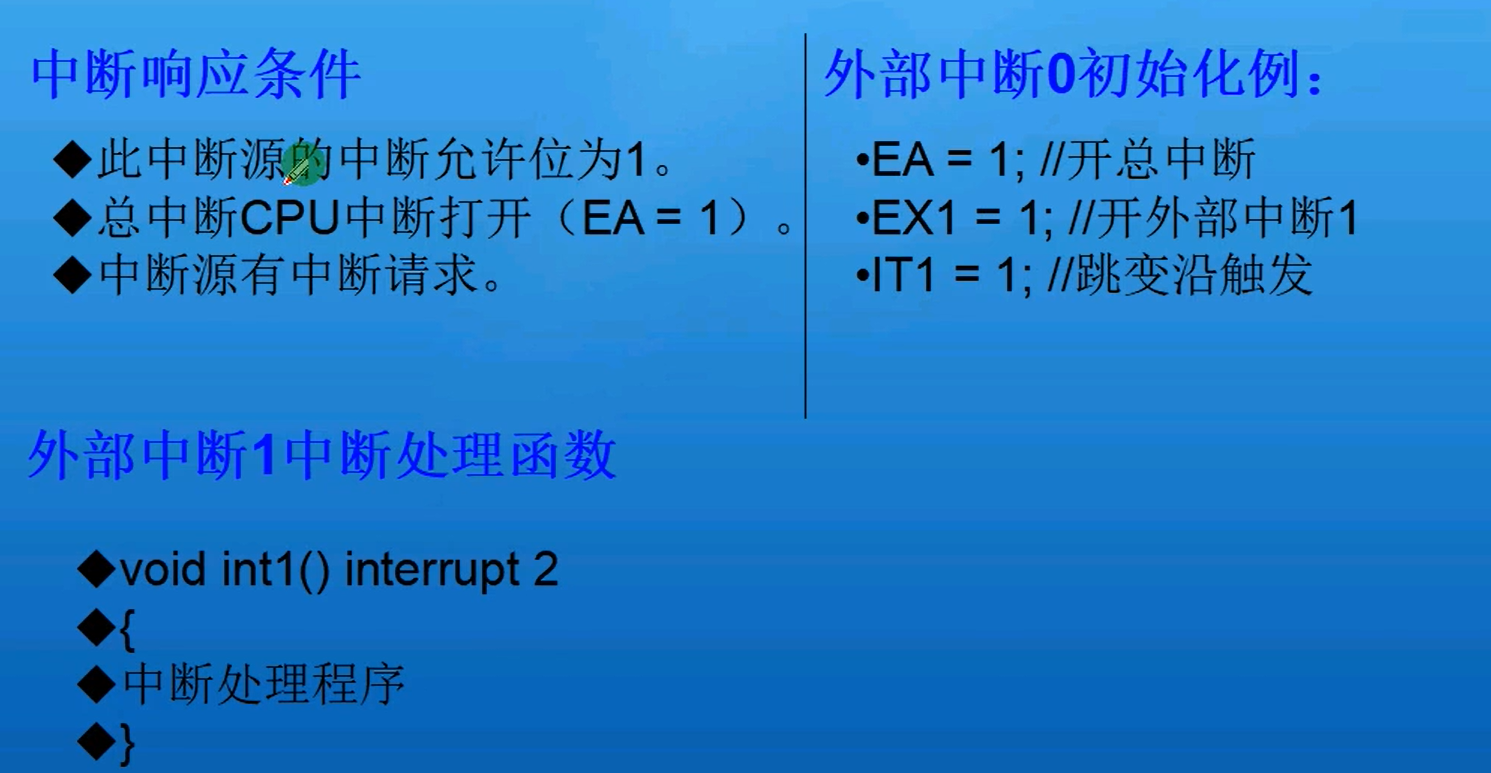 外部中断1:EX1为1允许外部中断响应。