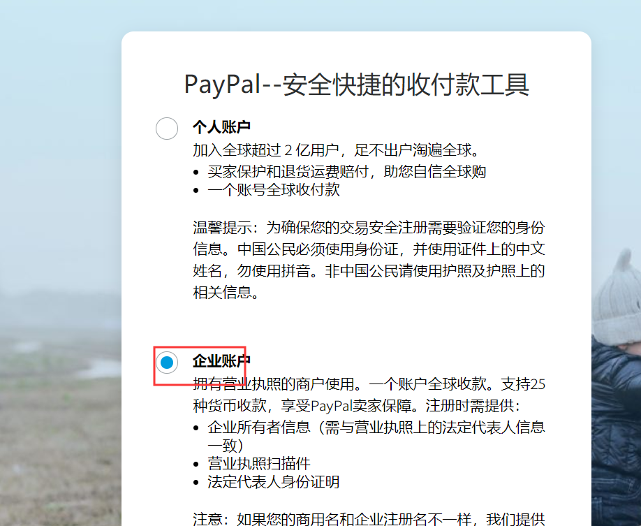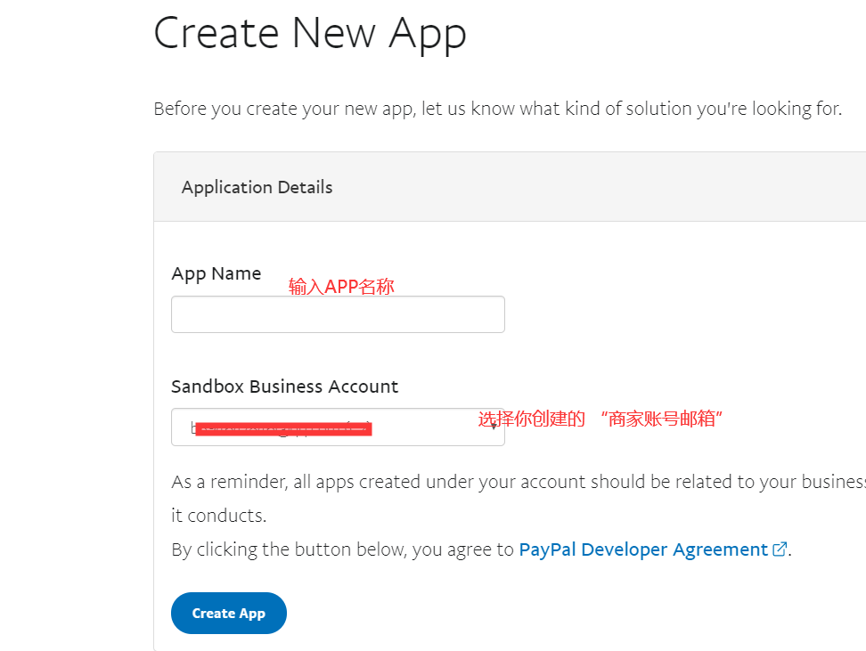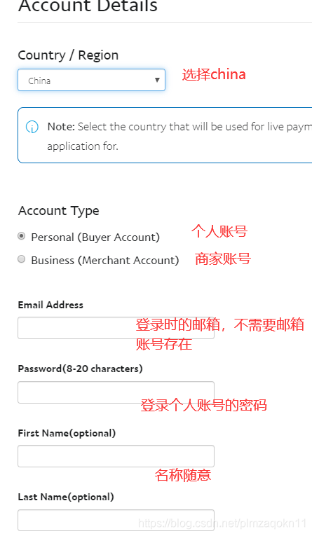 原理同上,注意 Account Type 选项需要选择 Business (Merchant Account)