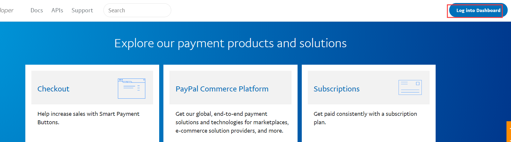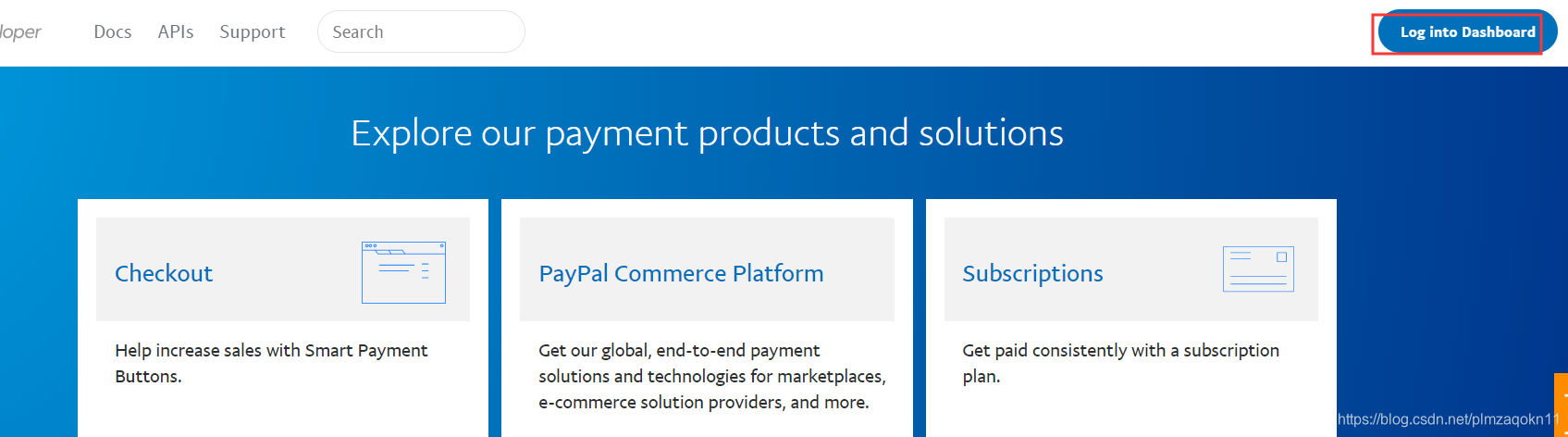 1、在浏览器中输入:https://developer.paypal.com/,登录刚创建的账号
