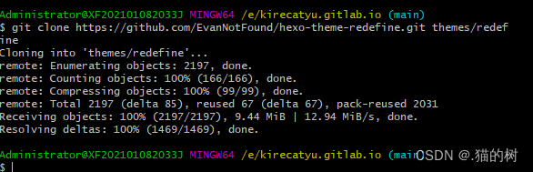 git clone https://github.com/EvanNotFound/hexo-theme-redefine.git themes/redefine